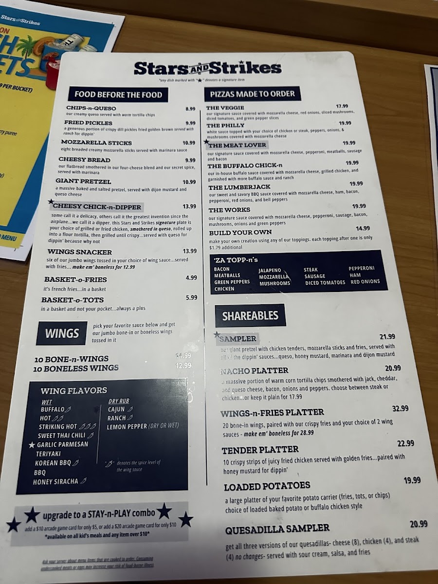 Located at 700 Columbiana Dr, Irmo, SC, Stars and Strikes Irmo is a delightful hub of entertainment and culinary offerings. The menu showcases a diverse selection of pizzas, featuring the indulgent Meat Lover with an array of meats, the loaded Works, and the cheesy bliss of the Cheese Lover. Each pizza is crafted with Stars and Strikes' signature sauce and fresh mozzarella cheese, ensuring every bite is bursting with flavor.